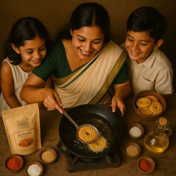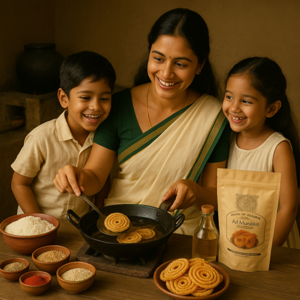 Ari Murukku is enjoyed as a tea-time snack or during festivals. It pairs well with filter coffee or masala chai, offering a satisfying, savory crunch. The snack is free from preservatives and artificial additives, highlighting authentic homemade flavors and traditional preparation methods.